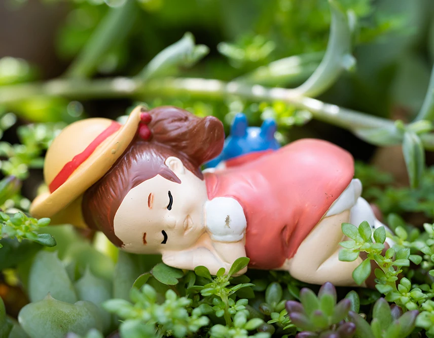 Kék Totoro Figurák És Lány Alvás, Studio Ghibli Tündérkerti Szomszéd Miniatűr Tiny Terarium Diy Kiegészítők