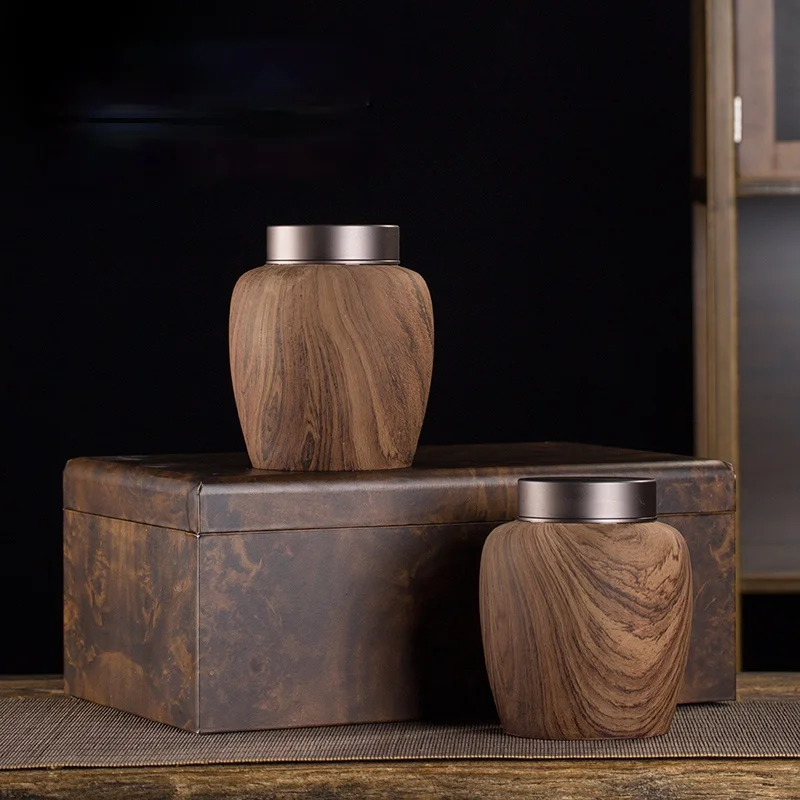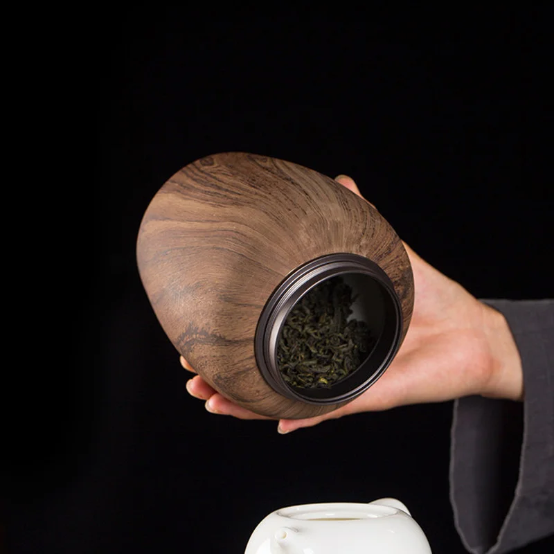 Kerámia Edény Tea Caddy Utánzat Fa Gabona Doboz Lezárt Étel Konténer Szervező Ajándékdoboz Tároló Tartály Dekoratív Üvegek