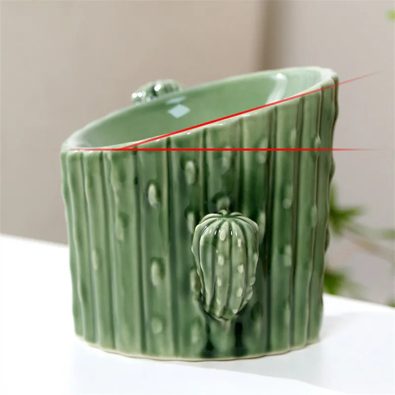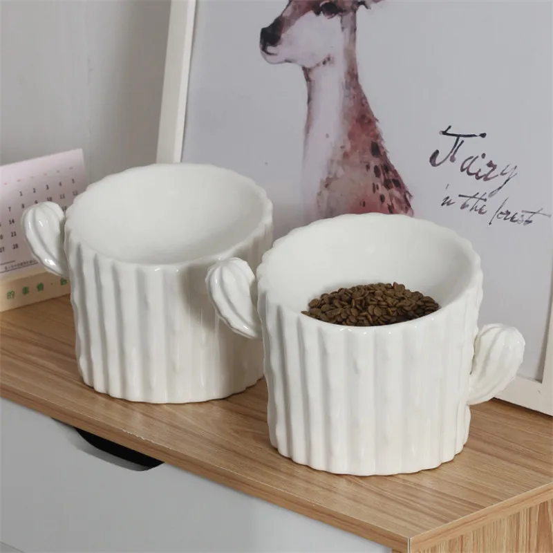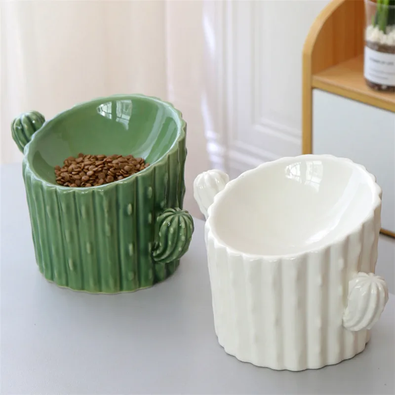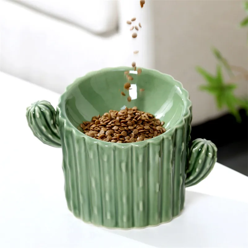 Kerámia Kaktusz Alakú Nem Csúszás Macskaeledel -Táplálkozó Tál Védve A Nyaki Gerinc Magas Lábú Kutya Ivóvíz Étel Kölyökkutya