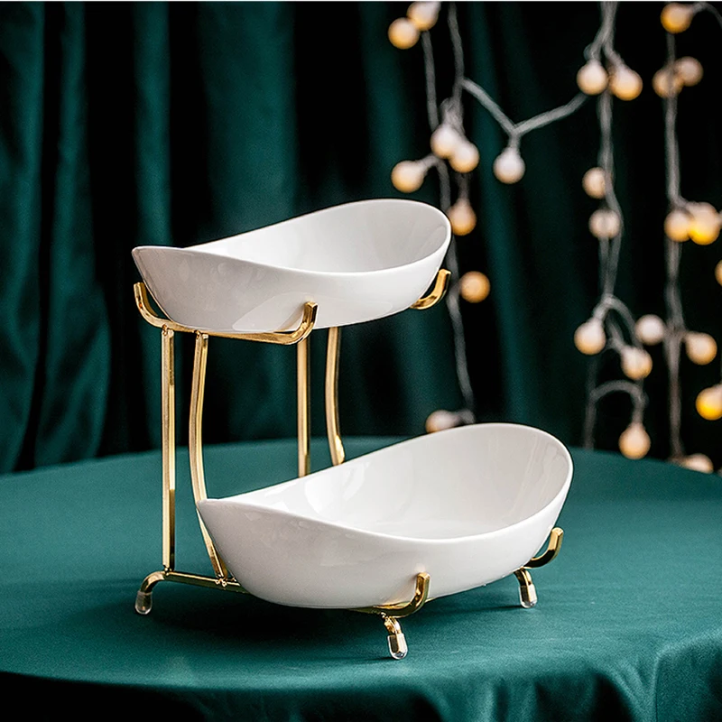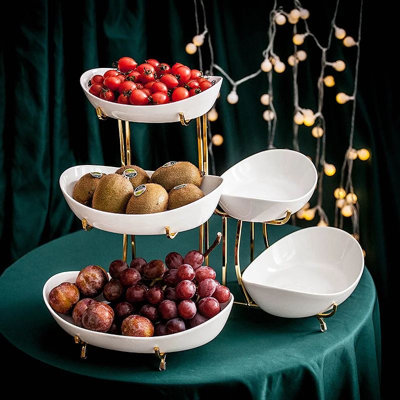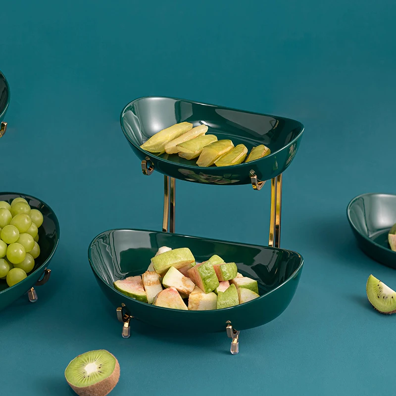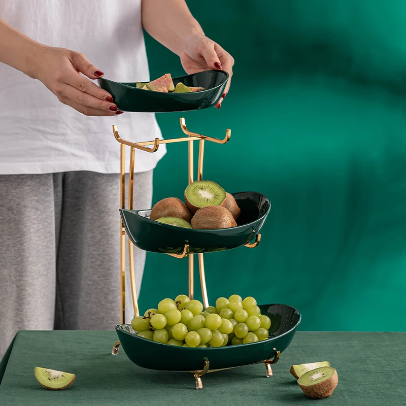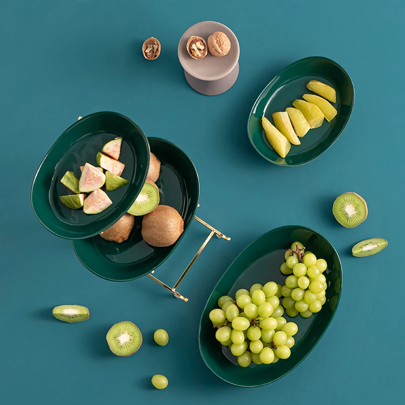 Kerámia Sötétzöld Gyümölcs Tál Kreatív Dekoráció Fém Rack Snack Tálca Nappali Étkezőasztal Asztali Tálcák Kézműves