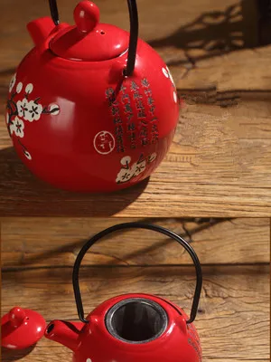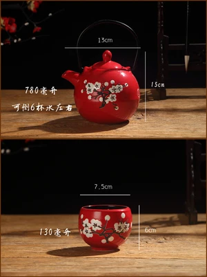 Kerámia Szilva Teakészlet Kreatív Vörös Teáscsésze Edény Kínai Stílusú Esküvői Ajándék Dowry Teamária Hideg Vizes Palack Kung Fu Fekete Teakészlet