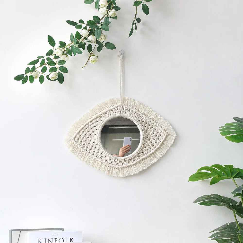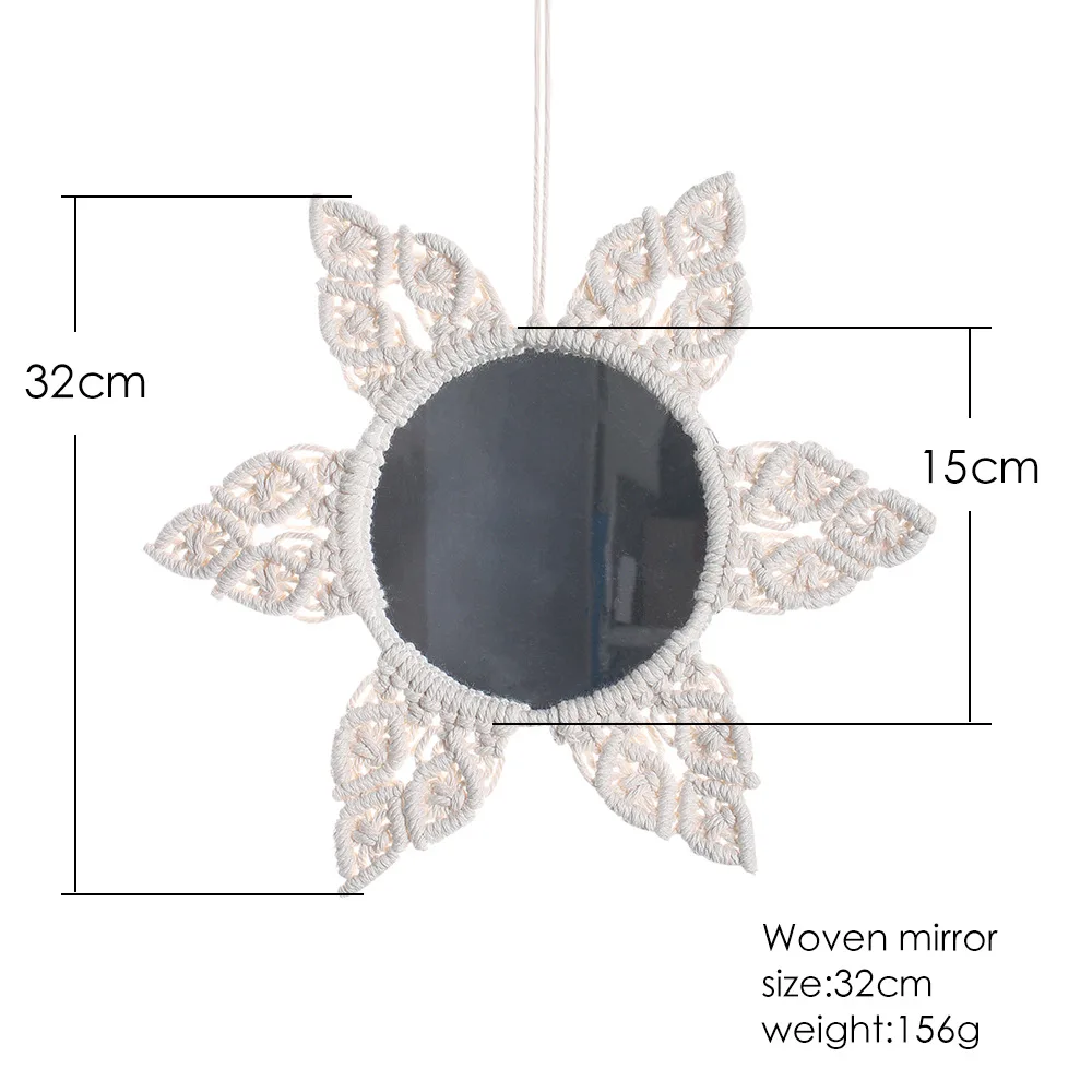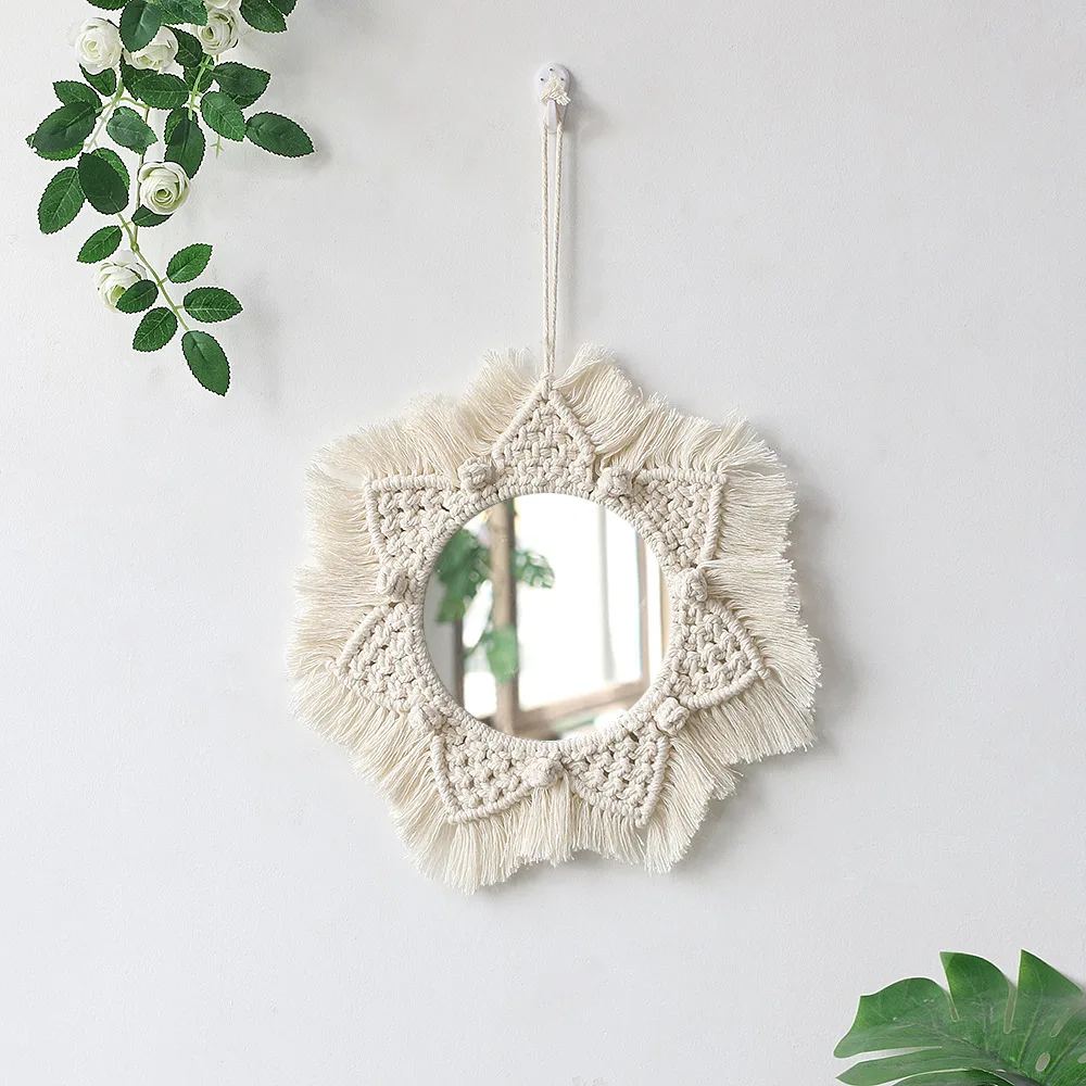 Kerek Makrame Tükör Falfájdozó Boho Lakberendezés Dekoratív Fali Tükrök Nappali Dekoráció Hálószoba Baba Óvoda Ajándék