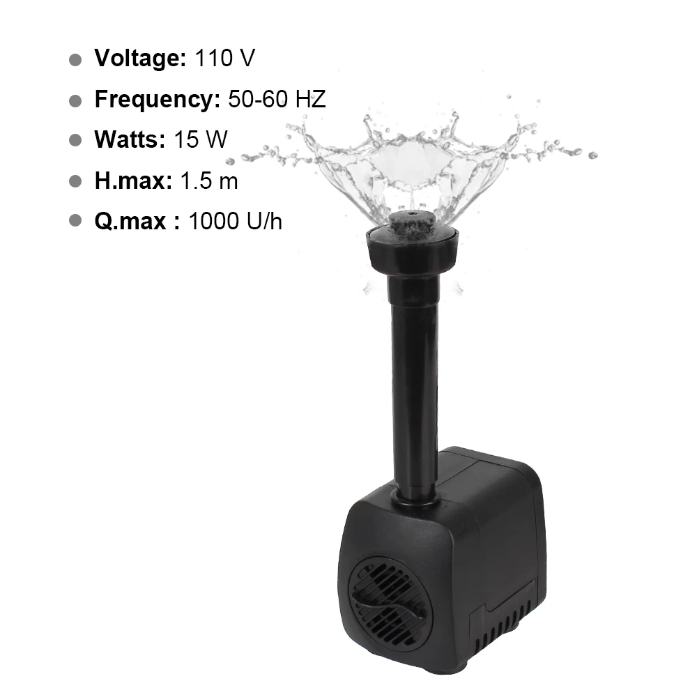 Kerti Akvárium Szökőkút Merülő Vízszivattyú Led-Es Lámpákkal Vízálló 15W Eu Dugó Ultra-Quiet Az Kültéri Medencéihez