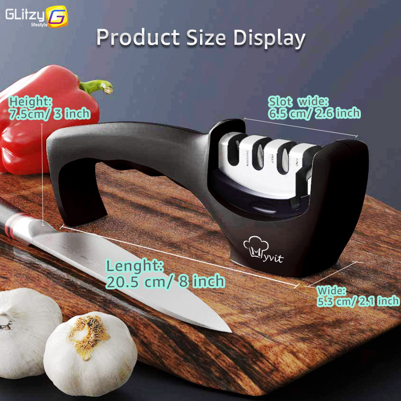 Különböző méretű késekhez használható: konyhai kések, 8″-os szakácskés, 5″-os használati kés, 3″-os gyümölcskés