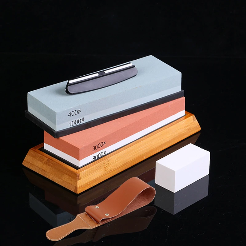 Két Kőkészlet Kés-Élesítő Whetstone Készlet Séf Nem Csúszós Bambuszkésekkel Grinder Kövek Professzionális Konyhai Élező Készlet