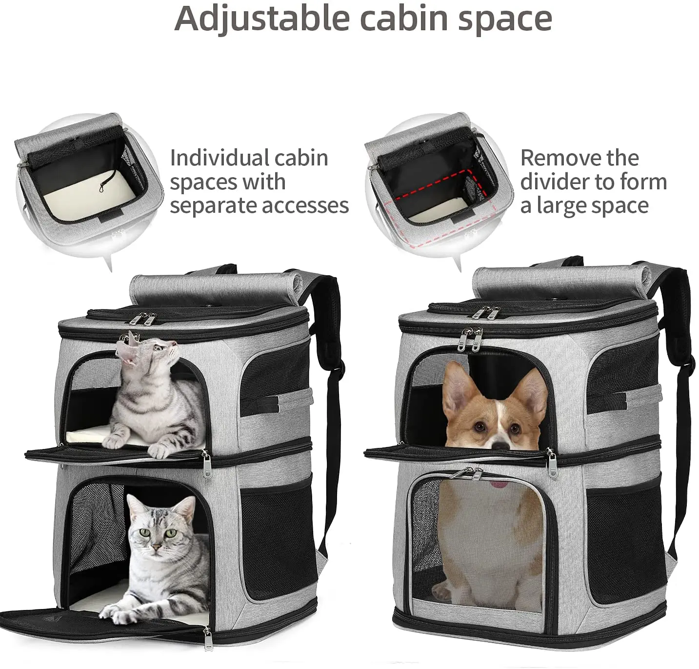 Kettős Rétegű Macska Hordozó Hátizsák Eltávolítható Macska Hordozó 2 Macskához Kis Közepes Kutyákhoz Macskák Lélegző Kisállat Hátizsák Utazási Zacskó