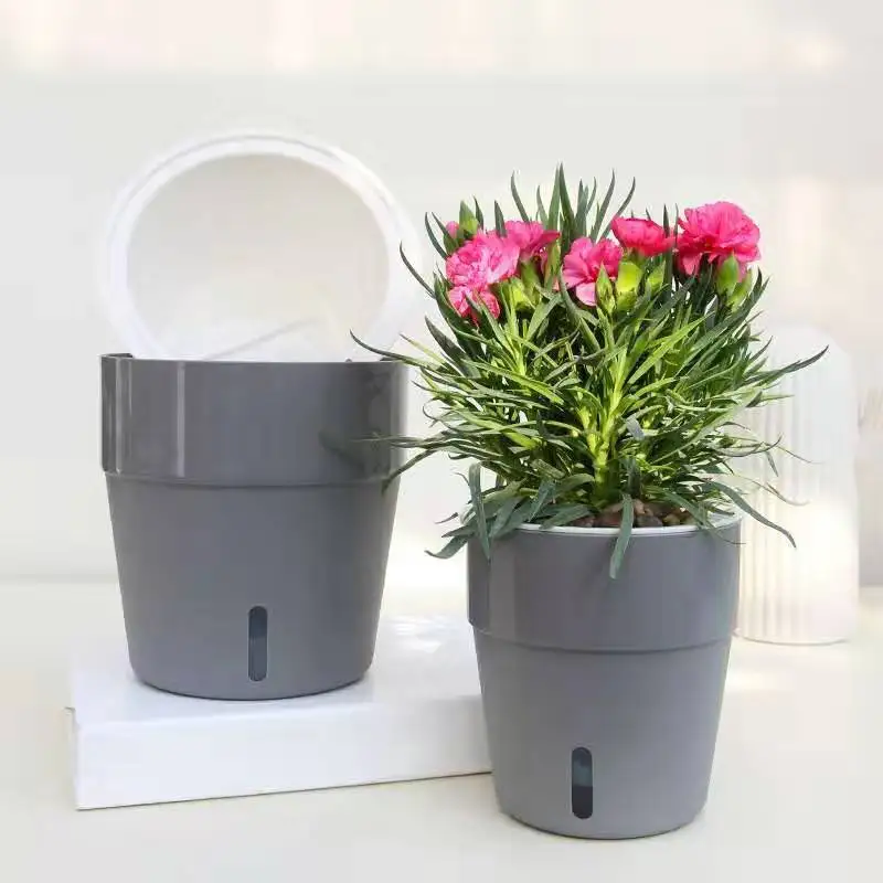 Kettős Rétegű Ön Öntözés Műanyag Virágcserép -Víz Automatikus Abszorpció Ültetvényes Színes Edény Asztali Növények Tartó