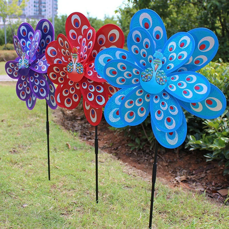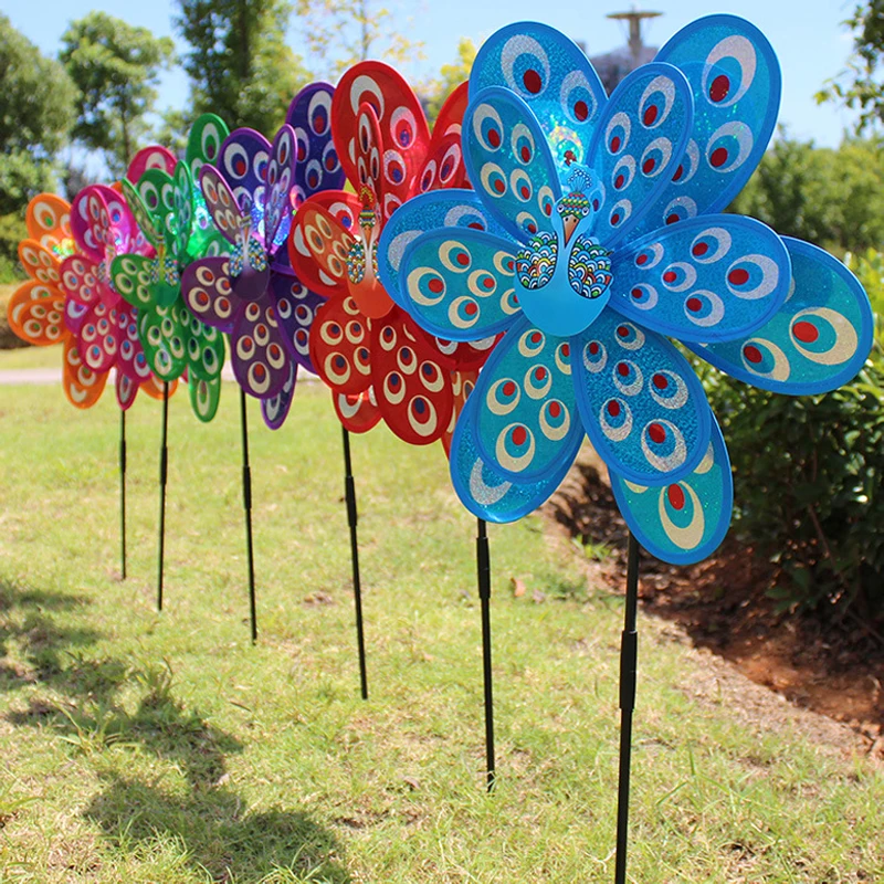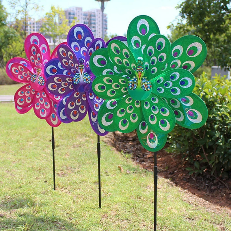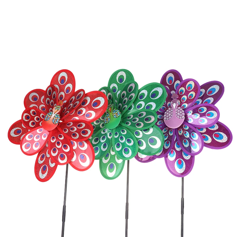 Kettős Rétegű Páva Lézer Flitterek Szélmalom Színes Szélfutó Otthoni Kerti Dekoráció Udvari Gyerekek Játék