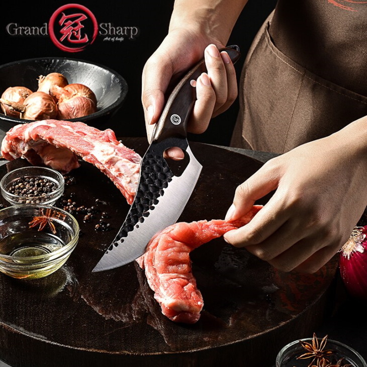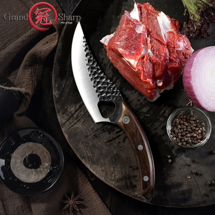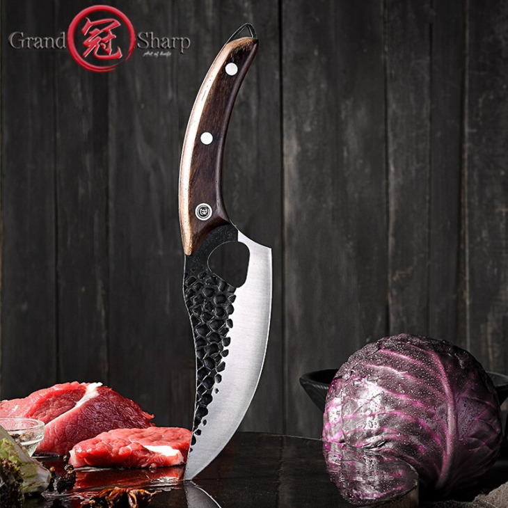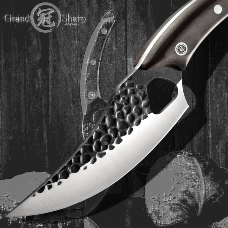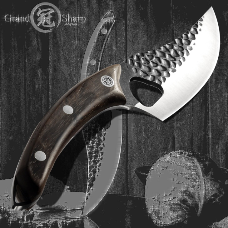 Kézműves Csontozás Kés, Hentes Scimitar’S Full Tang Ebony Fogantyú Marhahús Csirke Séf Konyhai Kés Kemping Új Új