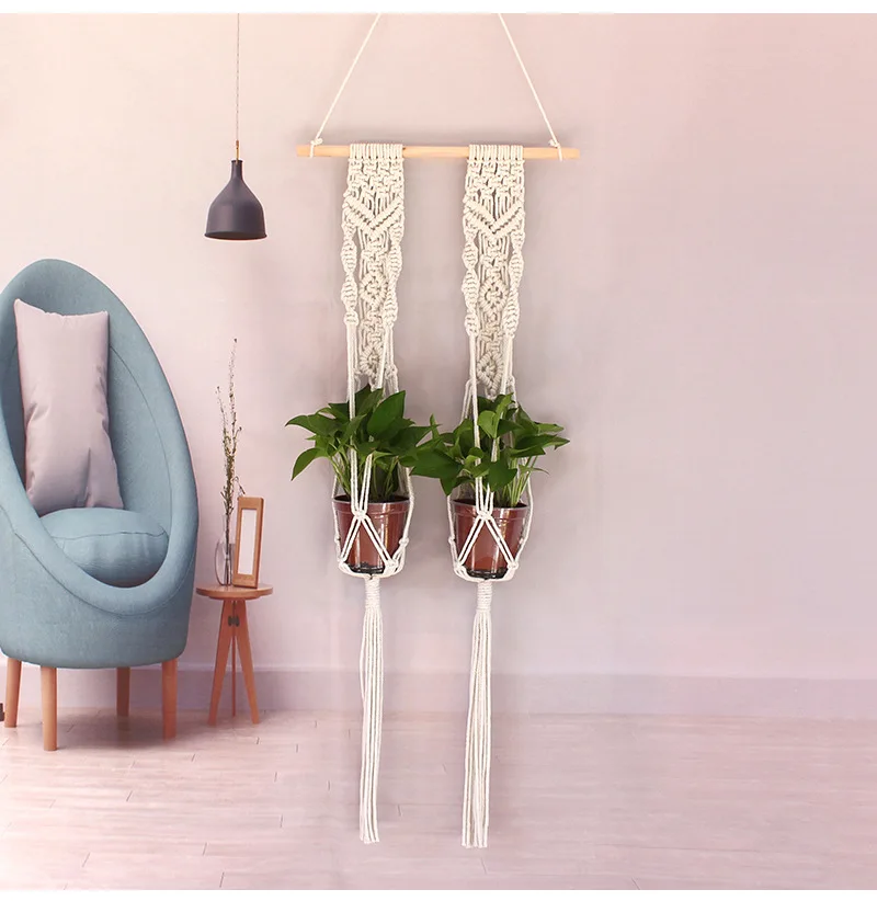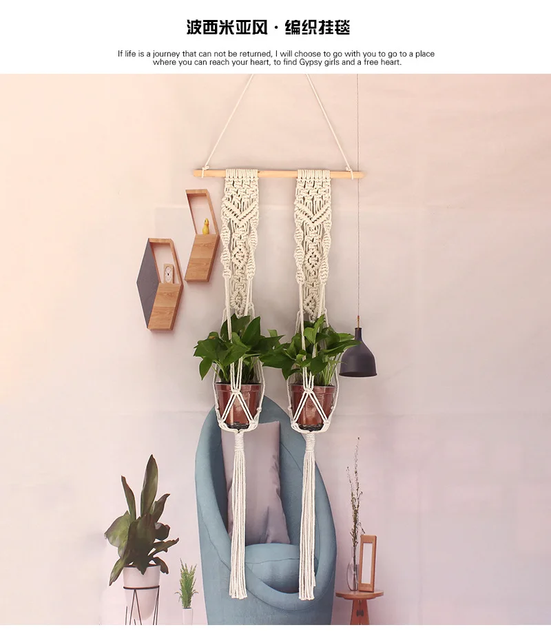 Kézzel Készített Edény Függőfal Lóg A Növény Makrame Falának Lógása Tálcához Fal