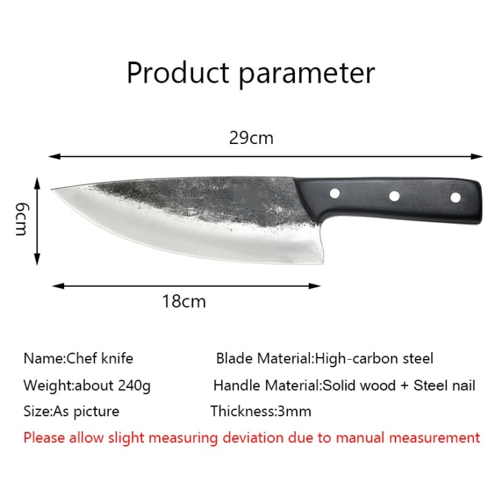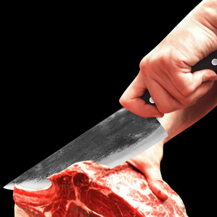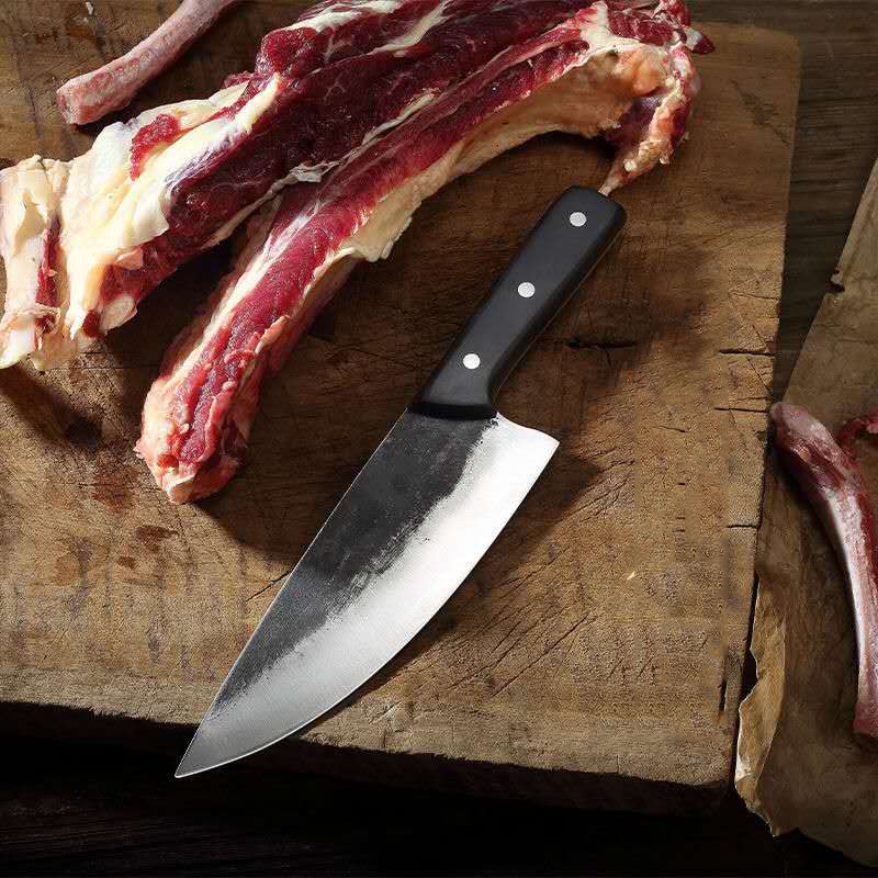 Kézzel Készített Kovácsolt Professzionális Szakácskés Hús Cleaver Magas Szén-Dioxid-Széntartalmú Acél Hagyományos Kínai Vágó Kések Fa Fogantyúval