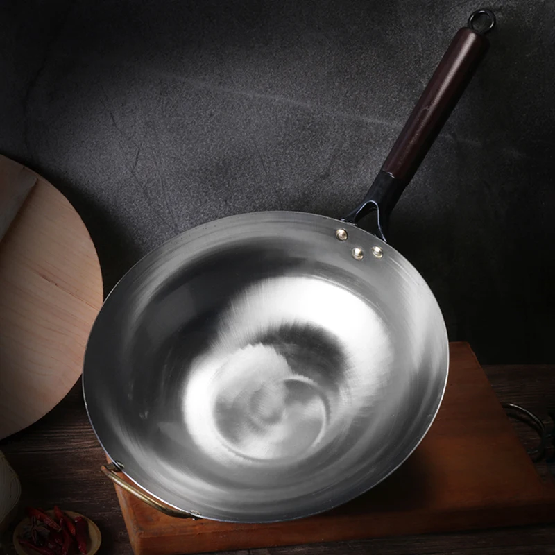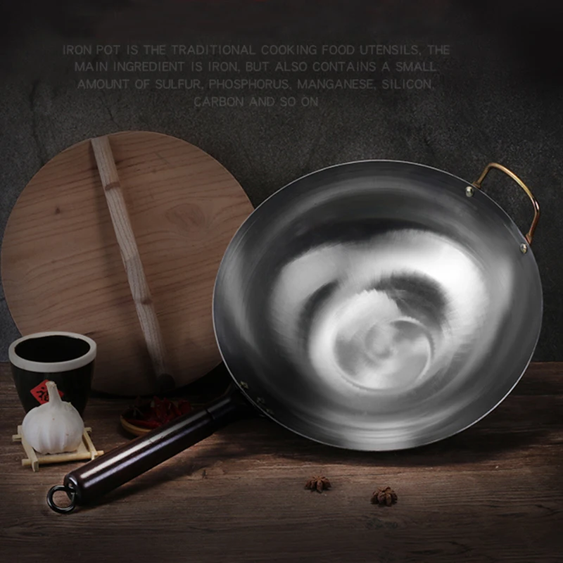 Kínai Hagyományok Vas Edény, Nincs Vegyi Anyag, Wok Leszerelhető Fa Fogantyúval, Karcálló Kézzel Kalapált Serpenyő Konyhai Főzés