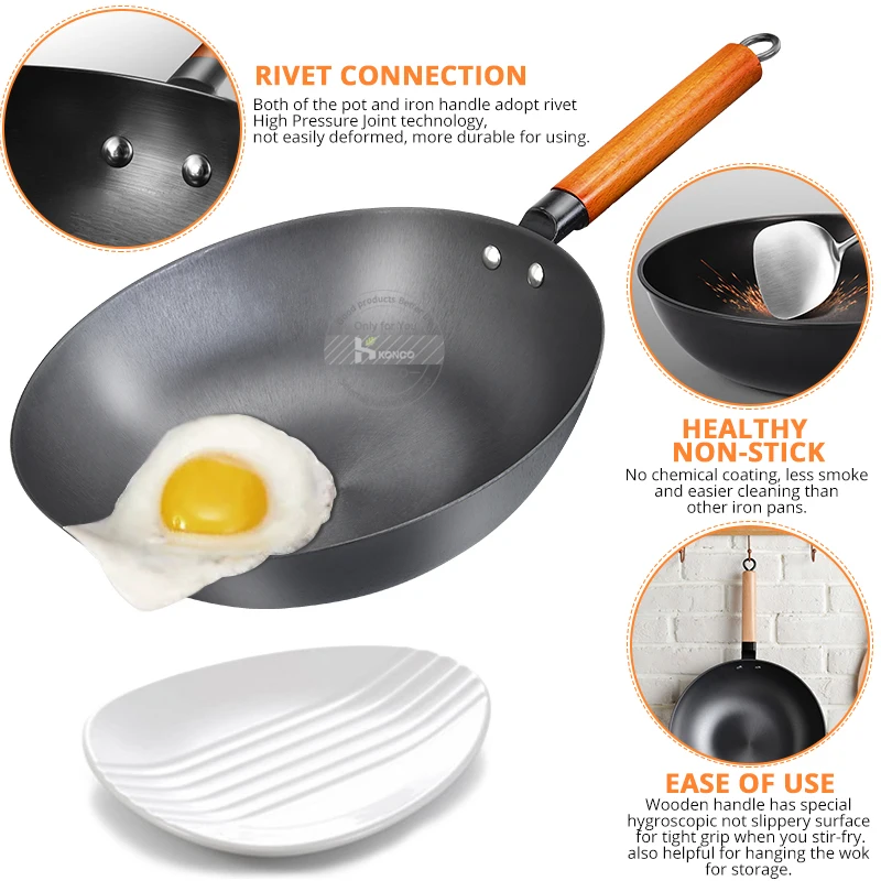 Kínai Hagyományos Kézzel Készített Vas Wok Nem Tapadós Serpenyő Nem Bevonatú Nagy Sűrűségű Kovácsolás Wok A Gázhoz És Az Indukciós Főzőlap W Ajándékdoboz