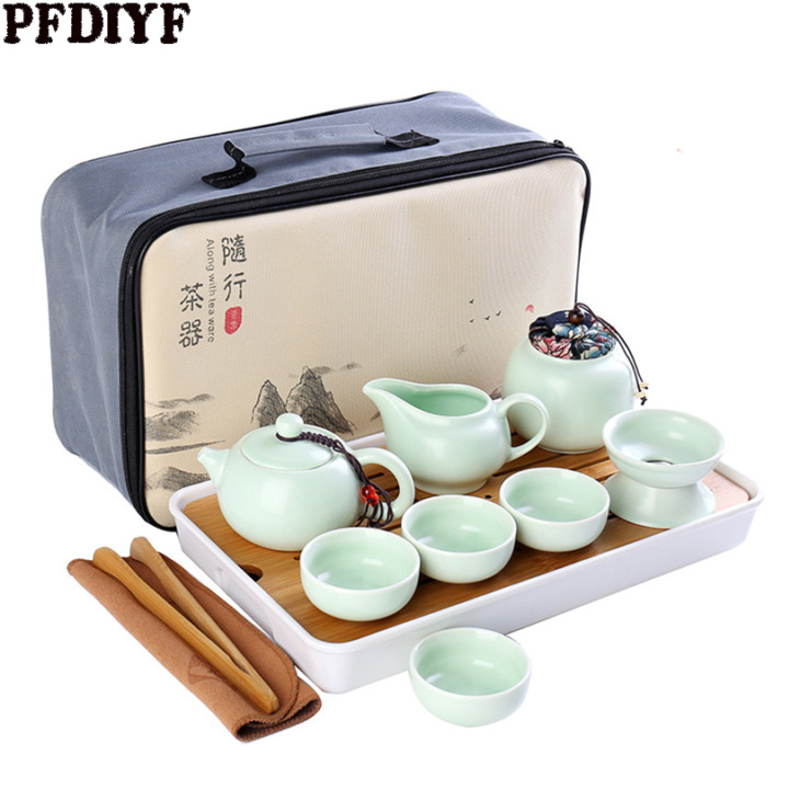 Kínai Utazási Kung Fu Teakészlet Táska Kerámia Hordozható Teáscsésze Porcelán Szerviz Gaiwan Tea Csésze Bögre Tea Ceremóniás Teáskanna