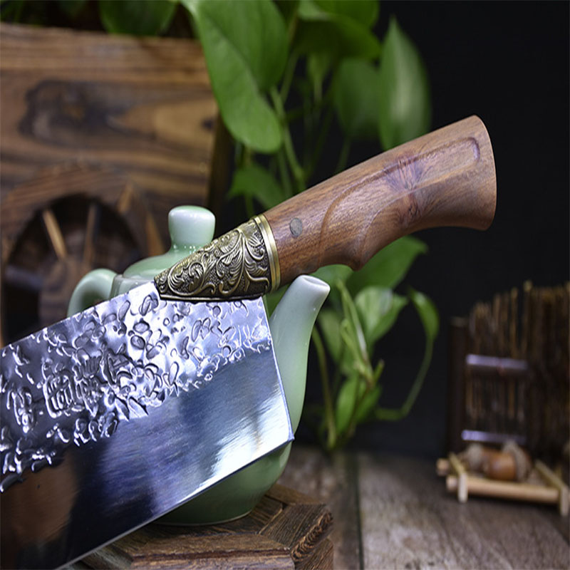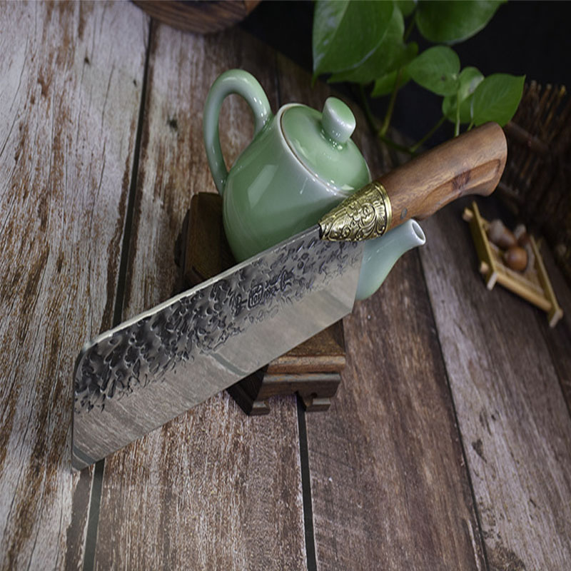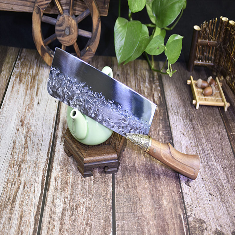 Kis Szakács Konyhai Séf Kés Kovácsolt Kínai Húskaros Sárkány Szobor Rózsafa Fogantyú Kézzel Készített Főzési Konyha Szerszámok