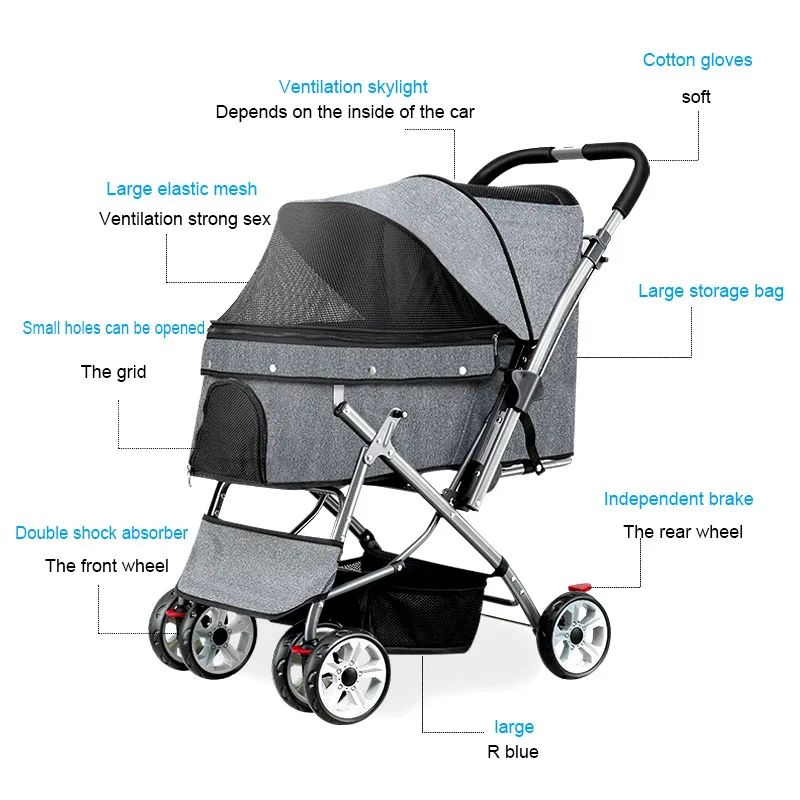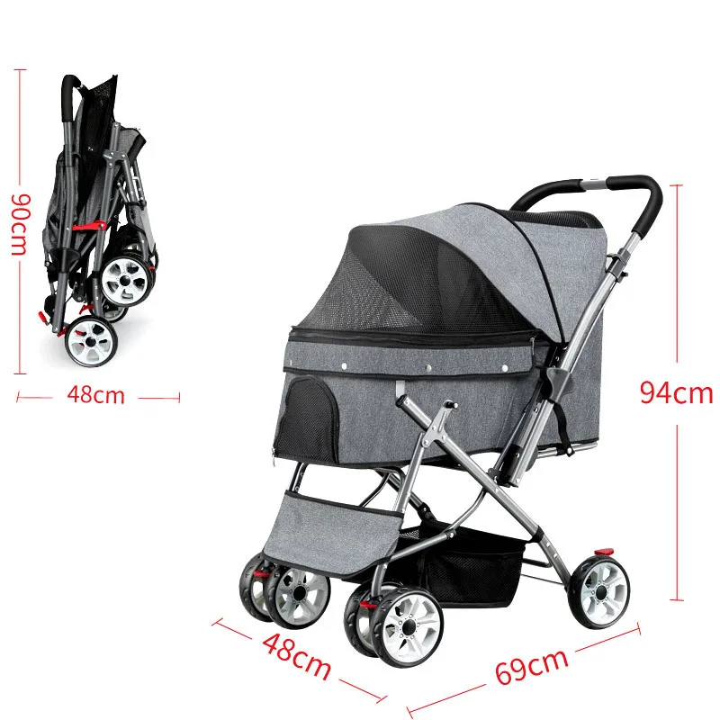 Kisállat Babakocsi Macska Hordozó Négykerekű Összecsukható Kocsi Tok Kutyákhoz Macskák Séták Pihenés Pet Lélegző Kutya Macska Kocsi Babakocsi
