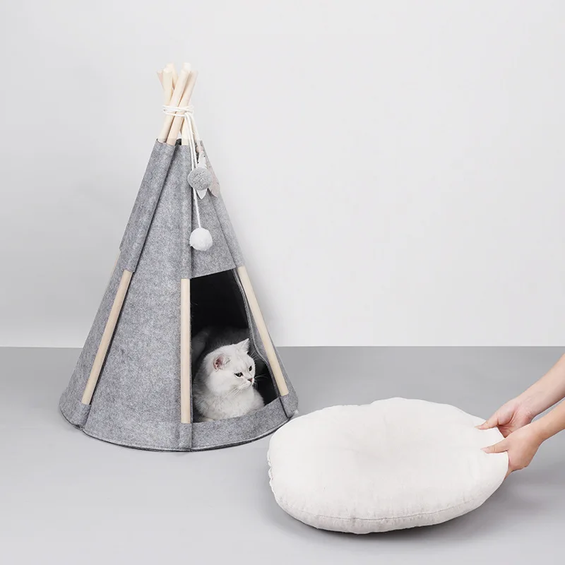 Kisállat Sátor Ágy, Kedvtelésből Tartott Teepee Kutya Macska Ágy Vastag Párnával, Kutya Kellékek Filces Kisállat -Ágy, Hordozható, Tartós Háziállat