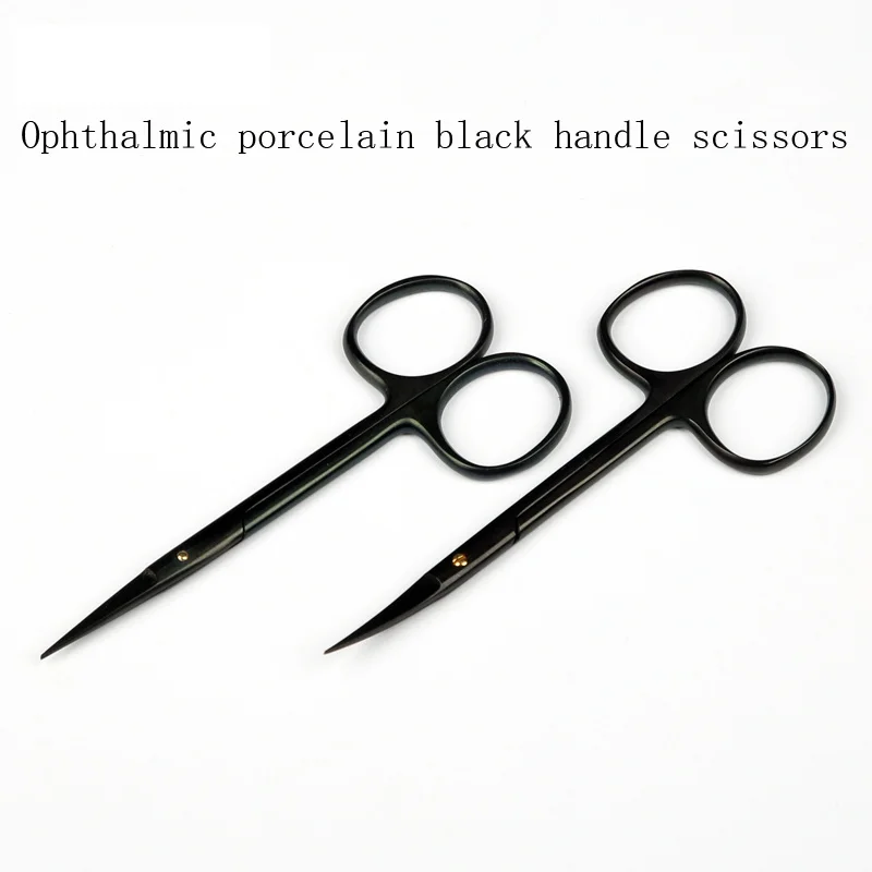 Koreai Porcelán Fekete Fogantyú Műtét Nyíró Volfrám Acél Kettős Szemhéj 10 Cm -Es Műanyag Szemműtét Szerszám Strai