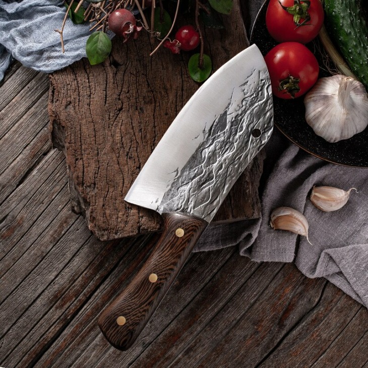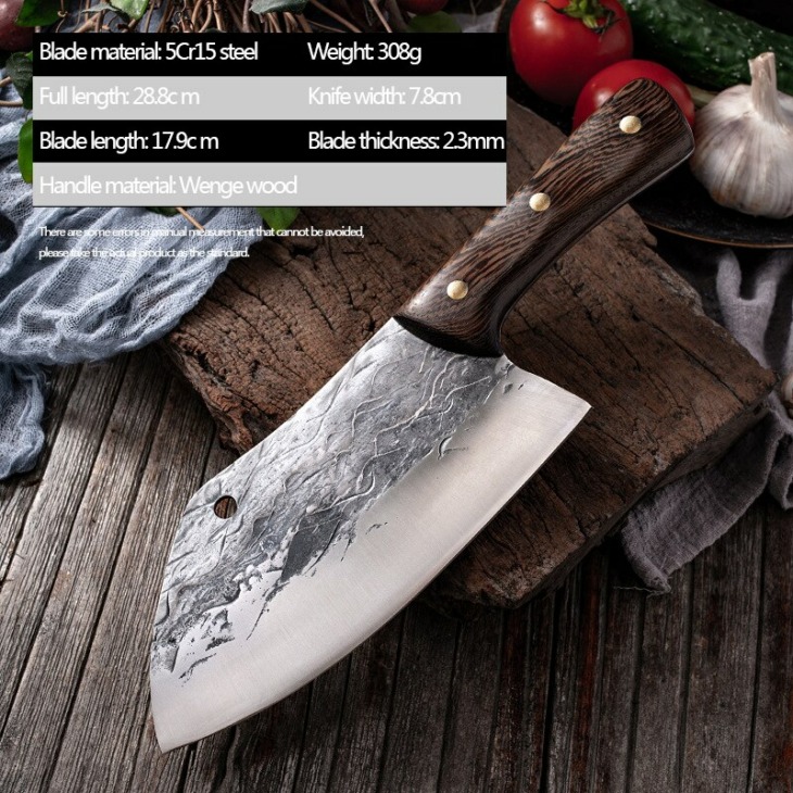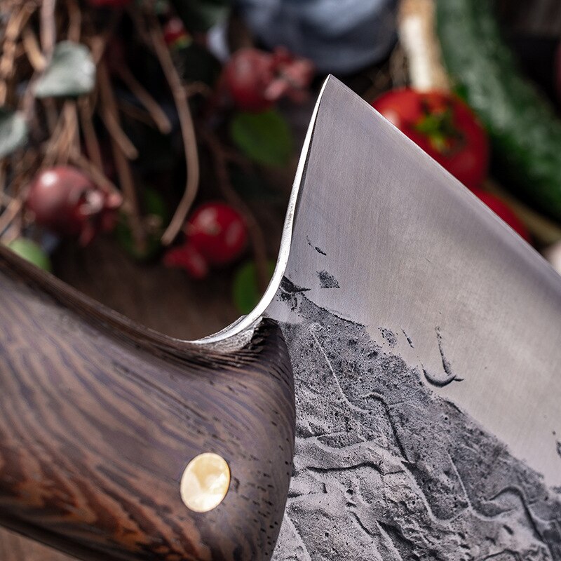 Kovácsolt Séf Konyhai Kés Háztartási Hentes Kés, Teljes Tang, Többcélú Kalapácsos Fa Fogantyú Húsvágás Éles Késhez