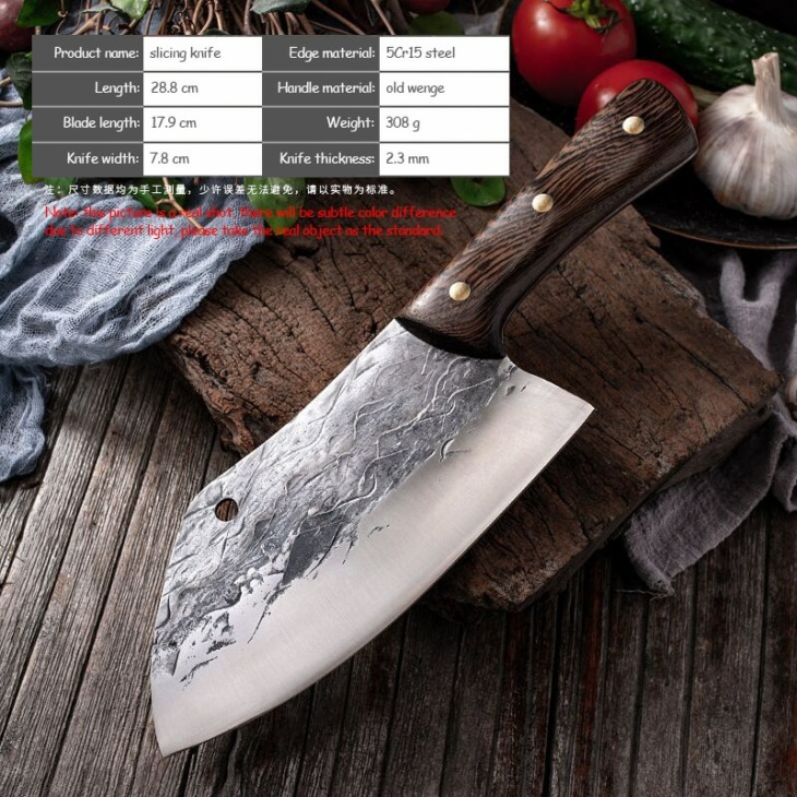 Kovácsolt Szeletelő Konyhai Kés Filing Csontozás Konyhai Kés Többcélú Kalapácsos Fa Fogantyú Hús Hasító Éles Vágó