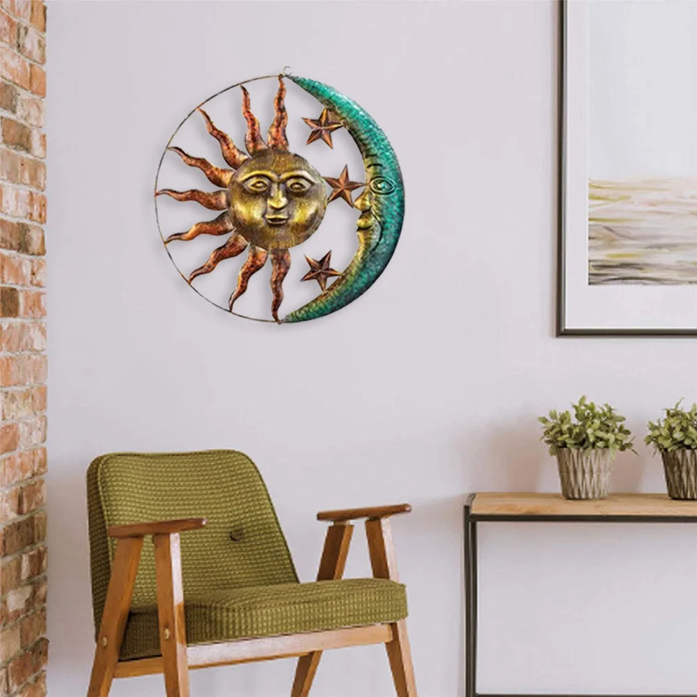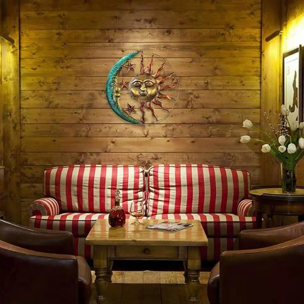 Kovácsoltvas Vasárnap Hold Fém Művészet Függő Medál Háttér Fal Nappali Dekoráció Szüreti Dísz Kültéri Otthoni Dekorációhoz