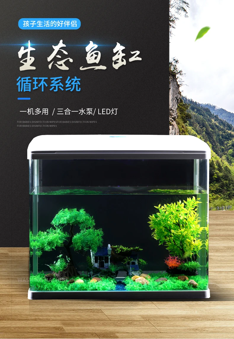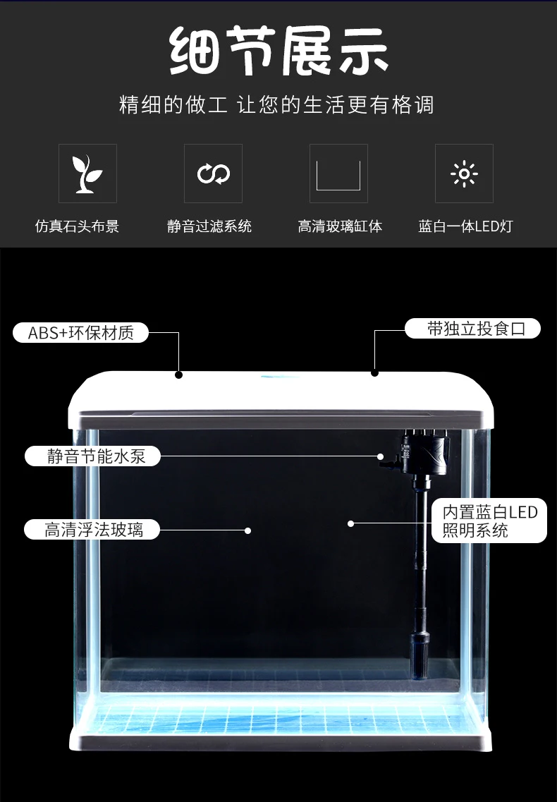 Közepes Méretű Haltartály Üveg Átlátszó Led -Es Könnyű Iroda Haltartály Aranyhal Téglalap Alakú Akvárium Peceras Hal Kiegészítők Ei50Yg