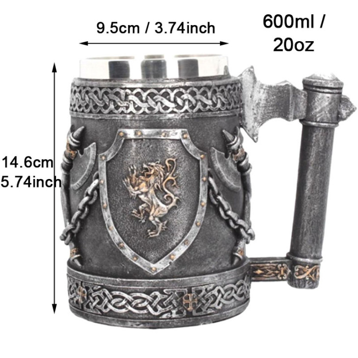 Középkori Hatchet Design 3D Sör Bögre Nagy Kapacitású Tankard Rozsdamentes Acél Gyanta Kávéscsészék És Bögrék Karácsonyi Halloween Ajándék