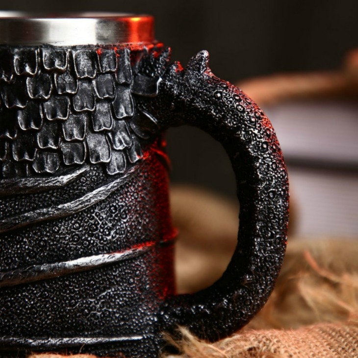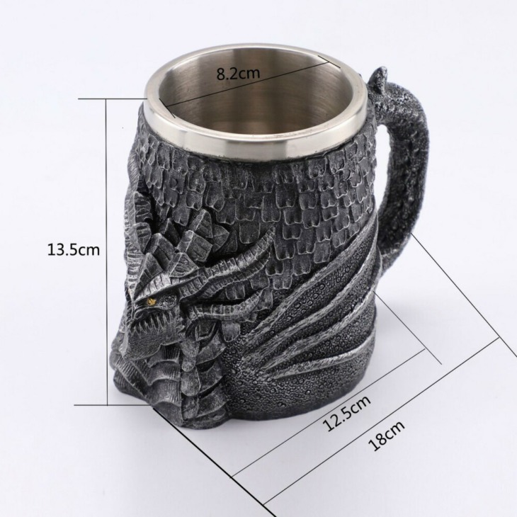 Középkori Sör Bögre Fekete Sárkány Tankok Rozsdamentes Acél Gyanta 3D -S Kávéscsészék És Bögrék Rajongói Karácsonyi Ajándék