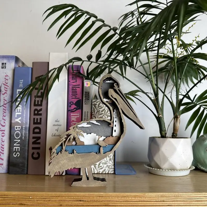 Kreatív 3D Pelicans Szobor Szobra Gyanta Üreges Díszek Ajándék Kézműves Belső Udvari Művészeti Otthoni Dekorációk