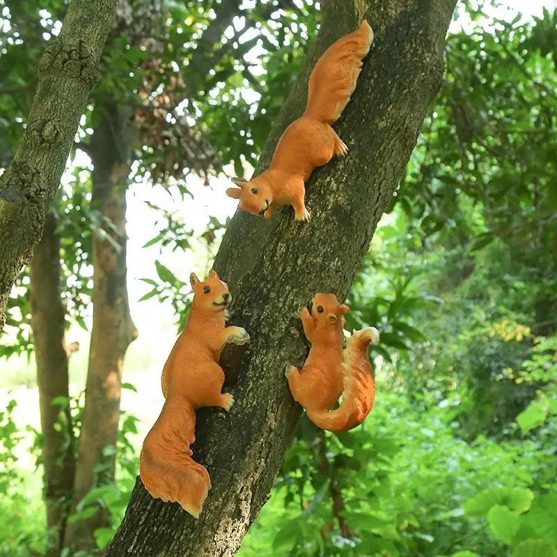 Kreatív Ág Kerti Udvari Dekoráció Fa Dekoratív Díszek Mókus Állati Szimulációs Szobor Kültéri