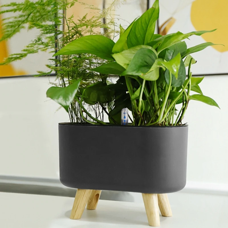 Kreatív Automatikus Önmagában Lévő Műanyag Növényi Edény Vízszint Jelzőpadlótáblával Asztallap Virágcserepő-Ültetvényes Csúszásgátló Wo