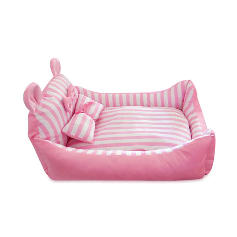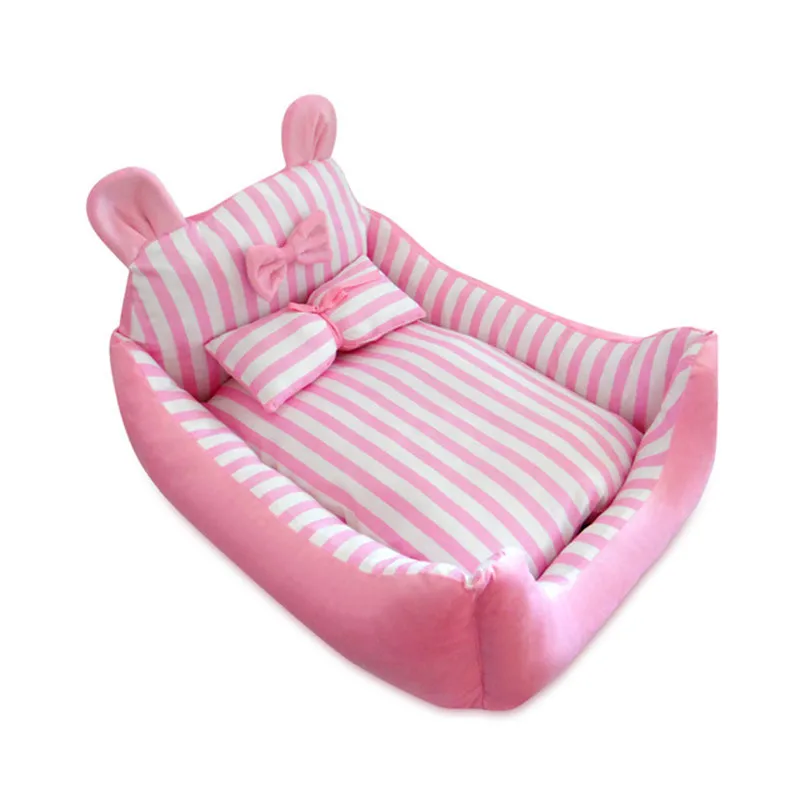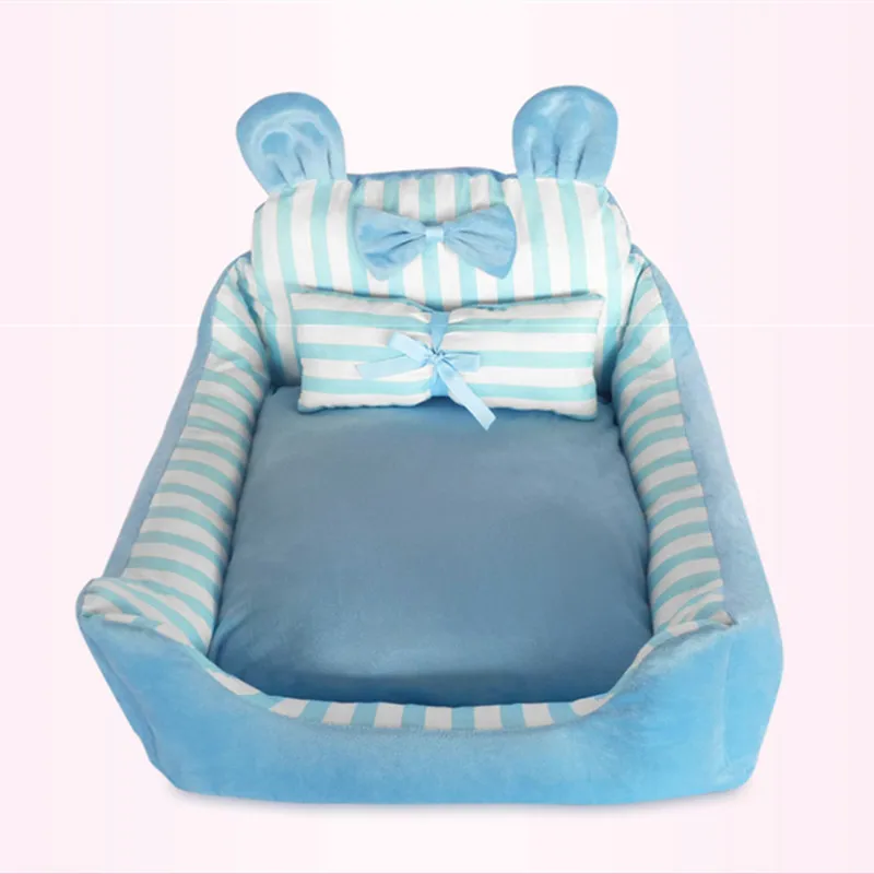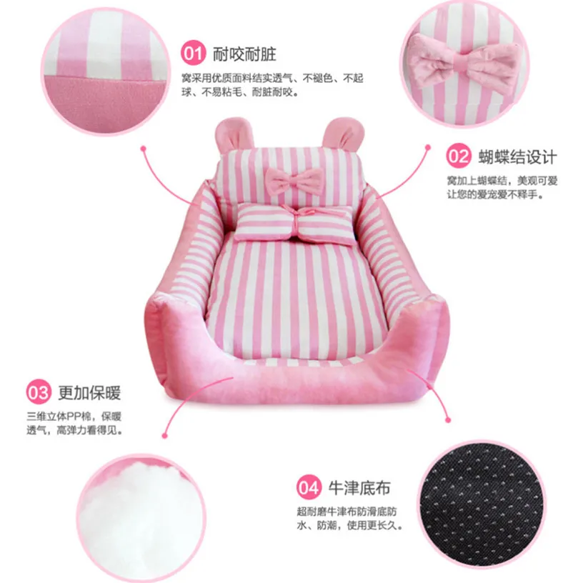Kreatív Csíkos Rajzfilm Kutya Fészek Eltávolítható Mosható Harapható Kisállat Ágy Meleg Kényelmes Lélegző Kennel Rózsaszín Kék Kedvtelésből Tartott Szőnyeg