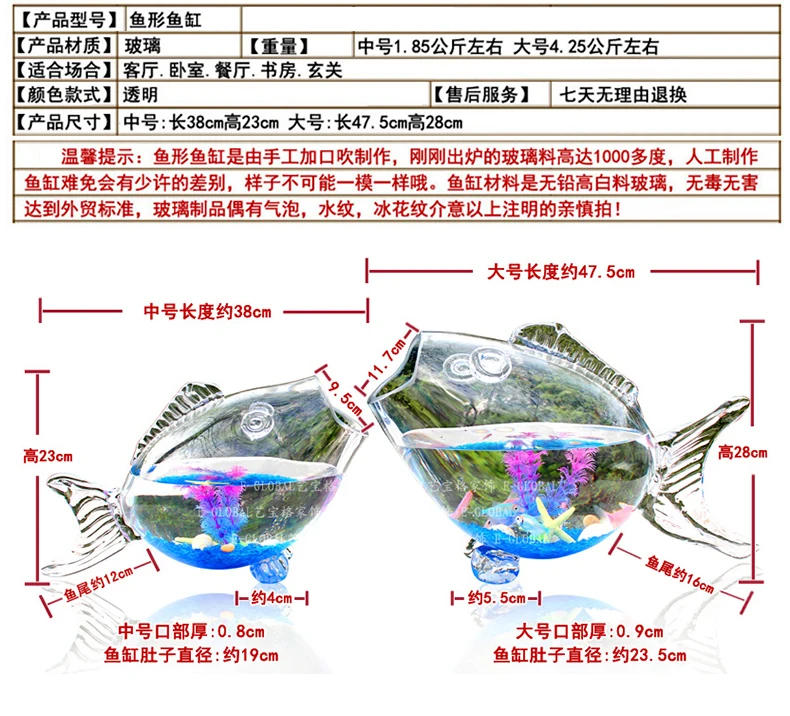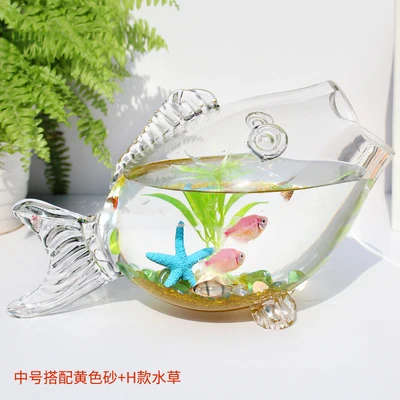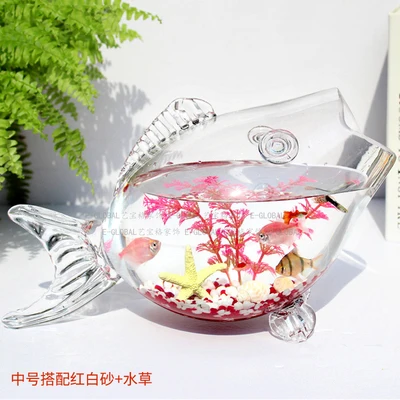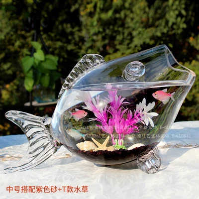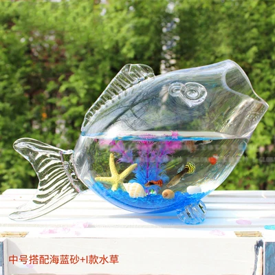 Kreatív Hal Alakú Üveghalak Akvárium Vastag Áttetsző, Nem Mérgező Ólom-Mini Aranyhal Tartály
