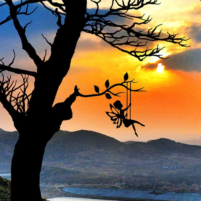 Kreatív Lengő Pillangó Tündérek Fémszobor Művészet Sziluett Fa Függő Dekoráció Kültéri Kerti Hátsó Udvarok