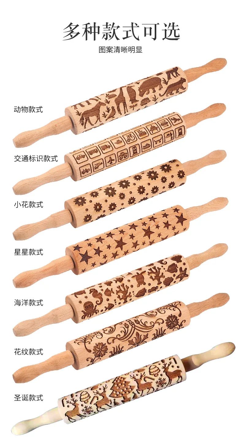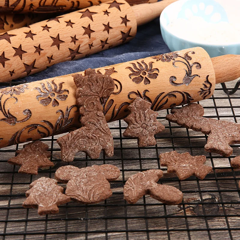 Kreatív Mintázatú Gördülő Csap Keksz Szilárd Fa Háztartás Préselt Sütés Konyhája Chrestmas Dombornyomott Nyomtatott Hengeres Csap Fa