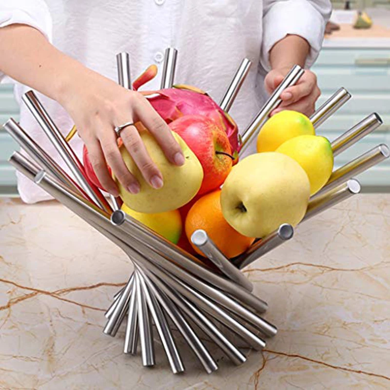 Kreatív Rozsdamentes Acél Konyhai Kiegészítők Divat Gyümölcs Tál Kosár Tálca Tároló Háztartási Szűrő Forgó Redő
