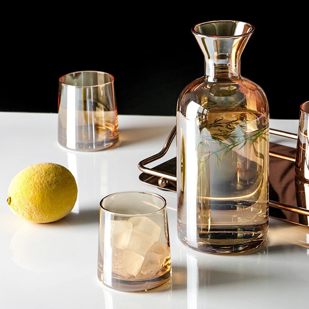 Kristályüveg Vizes Palack Hengeres Kancsó Csésze Készlet Kreatív Geometriai Üveg Víz Edény Átlátszó Ólomüveg Juice Kancsók
