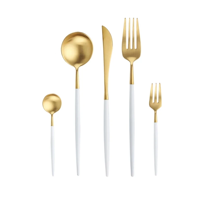 Kubac Hommi 30Db Fekete Arany Evőeszközök Fehér Matt Vacsorarakészlet Asztali Edények 6 Ember Számára