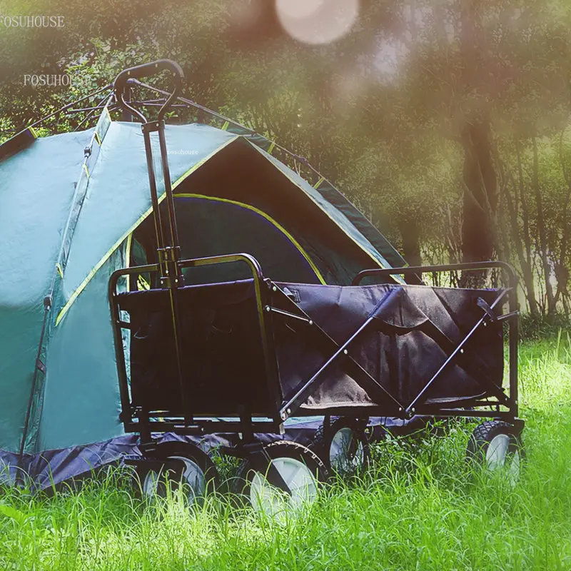 Kültéri Kerti Szekerek Összecsukható Kocsi Kerekekkel Kemping Északi Hordozható Piknik Húzza Rúd Horgászkocsik