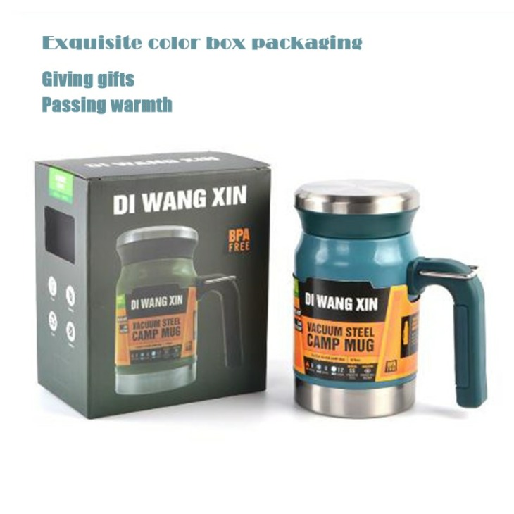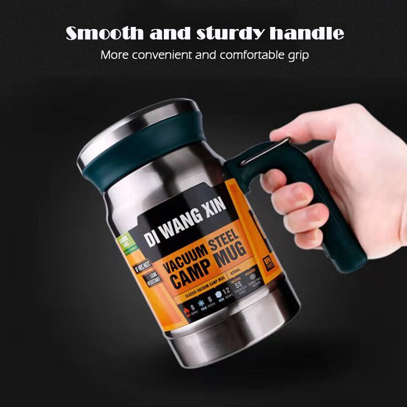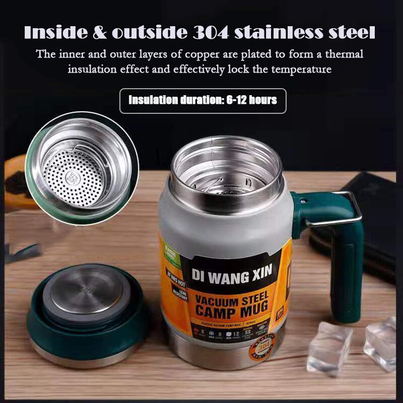 Kültéri Rozsdamentes Acél Vákuum Lombik Tea Csésze Szűrő Dupla Rétegű Iroda Vízcsésze Fogantyúval Új Kemping Bögre Hőkupa