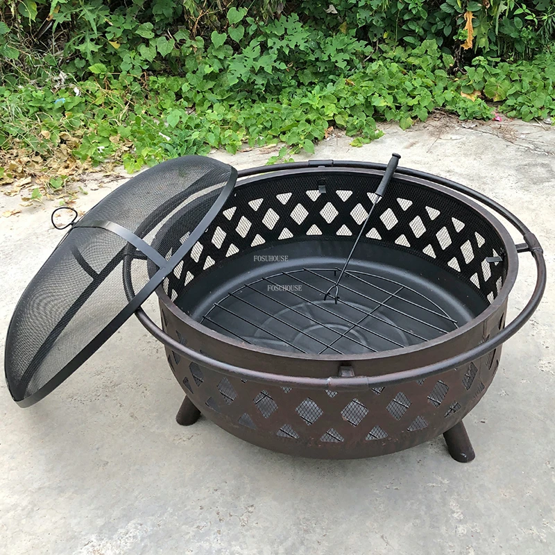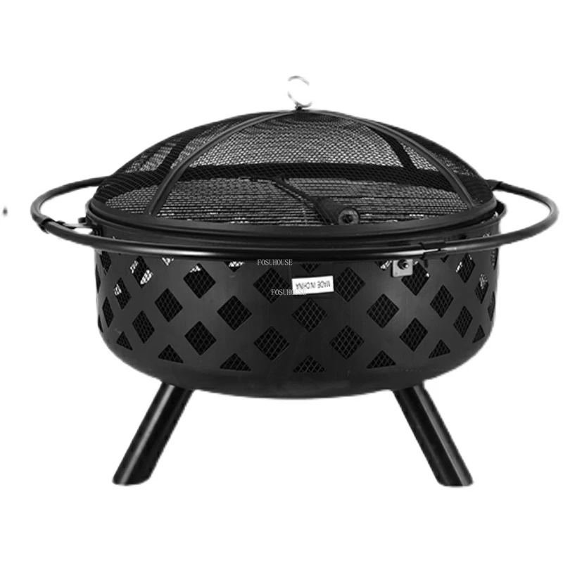 Kültéri Udvar Kerek Tűz Gödrök Egyszerű Otthoni Grill Állvány Kemping Kemence Modern Szén Borításos Máglya Kályha Fűtő