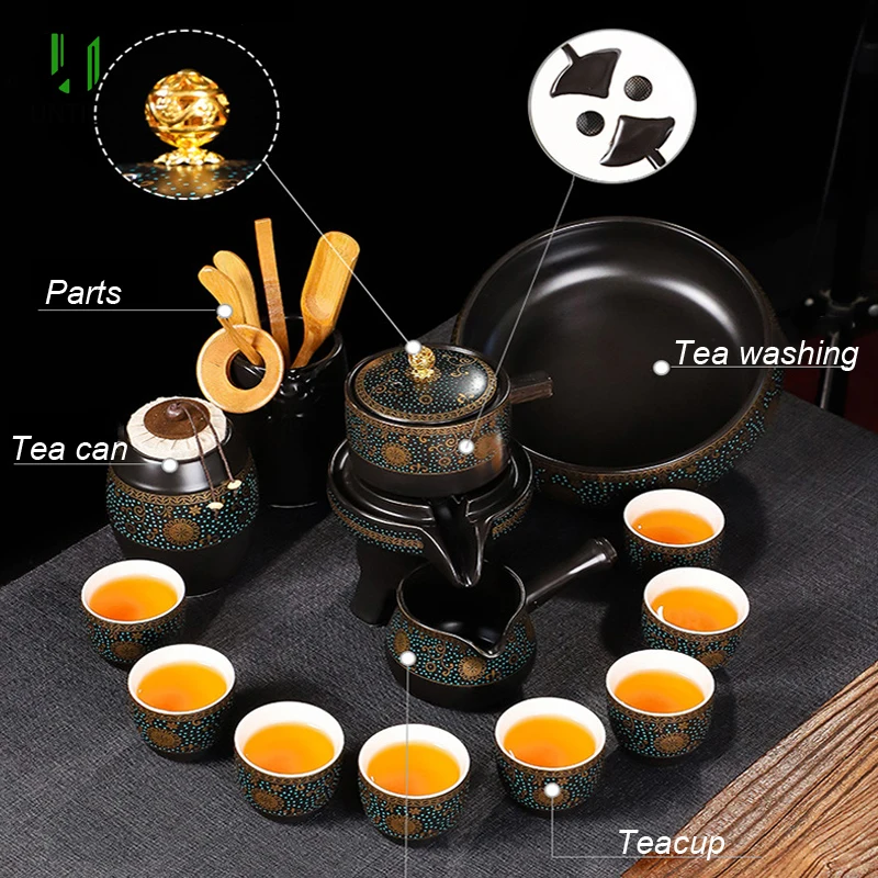 Kutat Nélküli Multifunkcionális Automatikus Kézzel Készített Kerámia Tea-Készlet, Scald Anti-Scald Design Forgatás Teáskanna Folyik Ki A Víz Csúcskategóriás Teakészlete