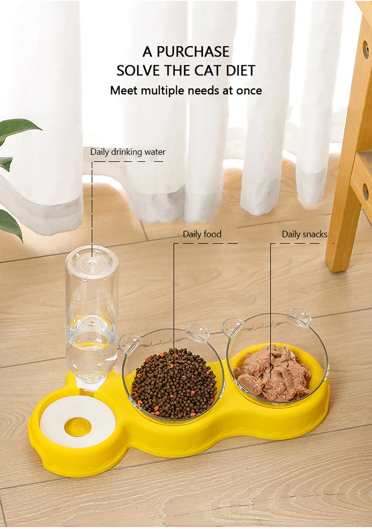 Kutya Tál Állványtal Automatikus Víztároló Adagoló Pet Cat Food Bowl 3-In-1 Fröccsenésálló Víztartály Emelkedett Eltávolítható