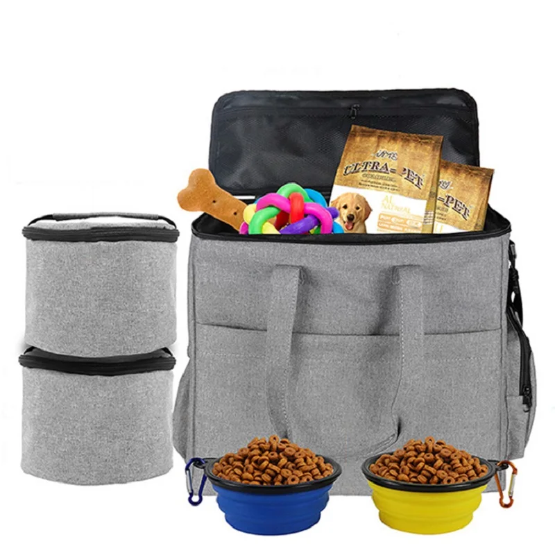 Kutya Utazási Táska Háziállat Utazó Kempingkészlet 2 Élelmiszer -Tárolóedényrel 2X Kölyökkutya Etetés Összecsukható Víz Tálak Kutya Kiegészítők