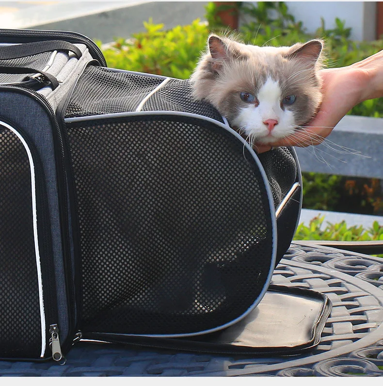 Légitársaság Jóváhagyott Kedvtelésből Tartott Kutya Macska Lágy Hordozó 2 Oldalsó Kibővíthető Összecsukható Macska Hordozó Táska Utazás Kültéri Használat Kis Kutyákhoz Macska