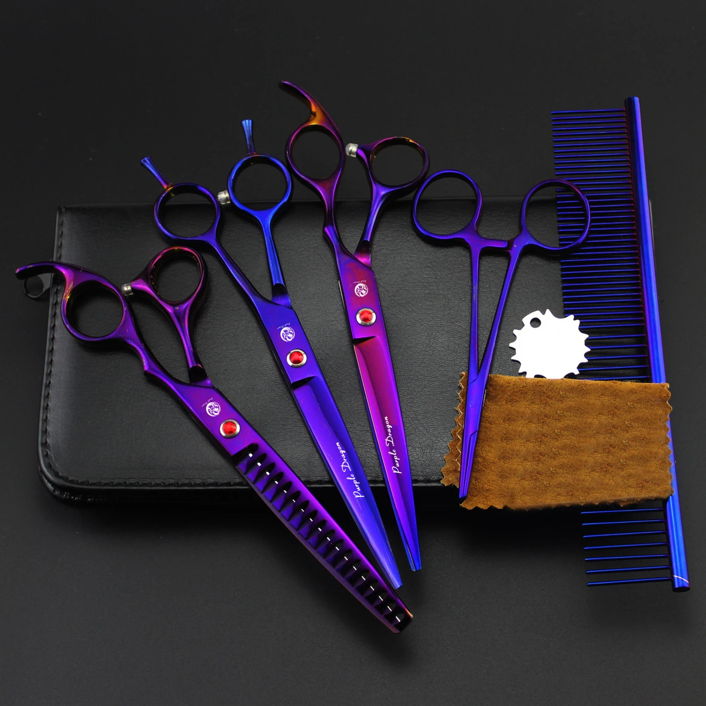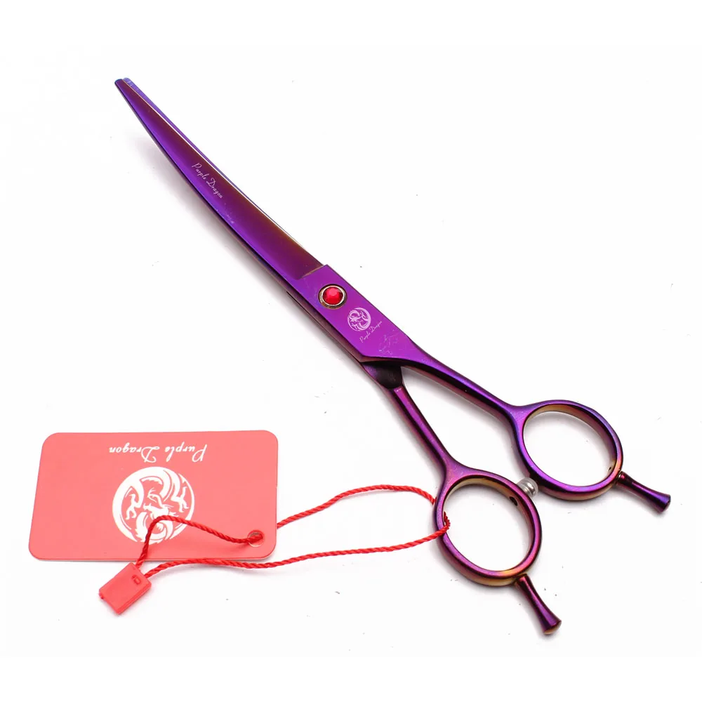Lila Sárkány 6,5 7 „Kutya Olló Professzionális Japán 440C Kisállat Ápoló Ollók Chunker Up Ívelt Olló Egyenes Olló Z3002
