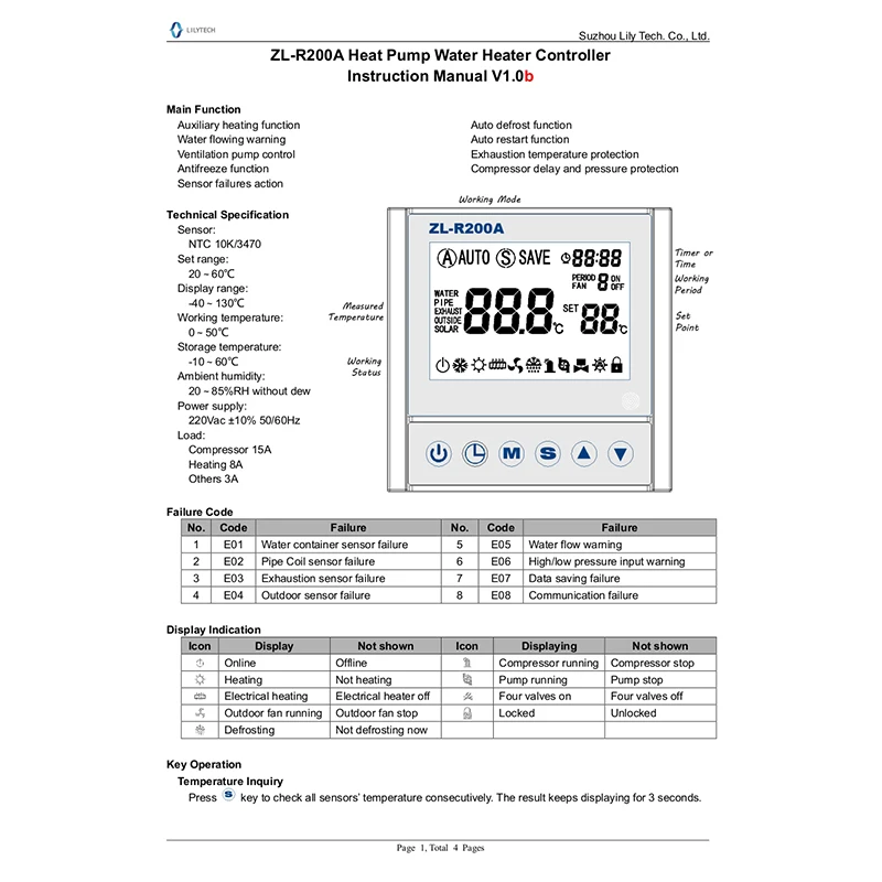 Lilytech Zl-R200A, Univerzális, Levegőforrás Hőszivattyú Vízmelegítővezérlő, Szivattyúzza A Levegőt A Forró Víz Fűtési Vezérlőhöz