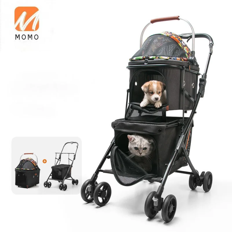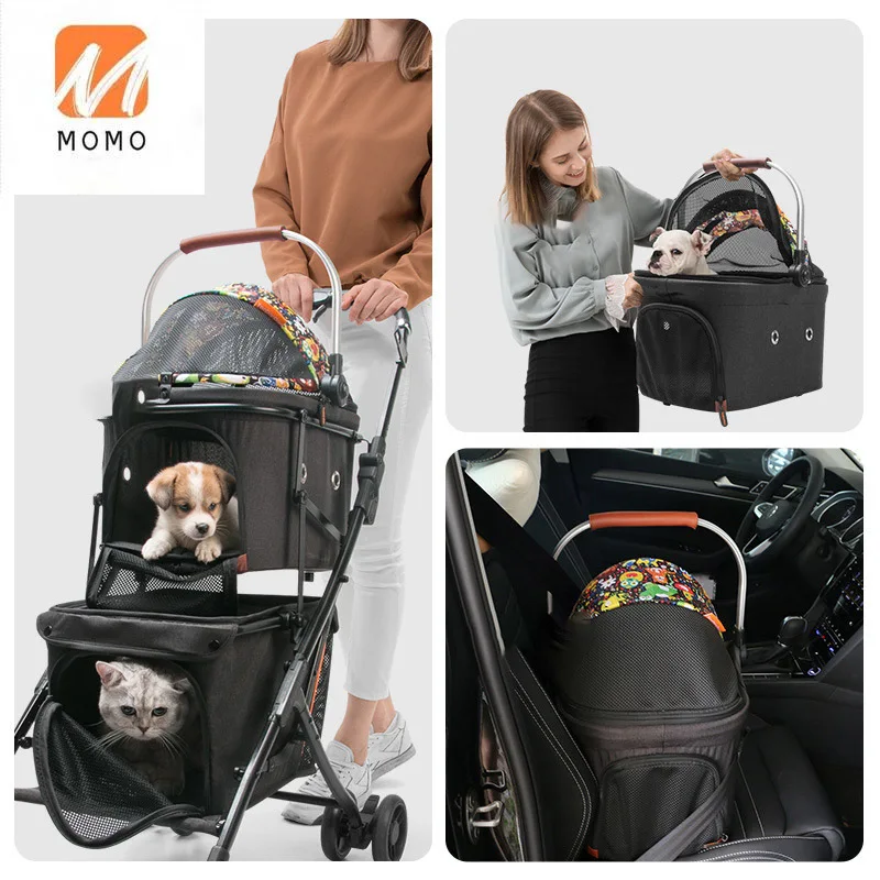 Luxus 3 In1 Kisállat Utazás Dupla Babakocsi Leszerelhető Kutya Hordozó Kosár Táska Hordozható Kedvtelésből Tartott Kocsi Kosár Összecsukható Kutya Dupla Kocsi