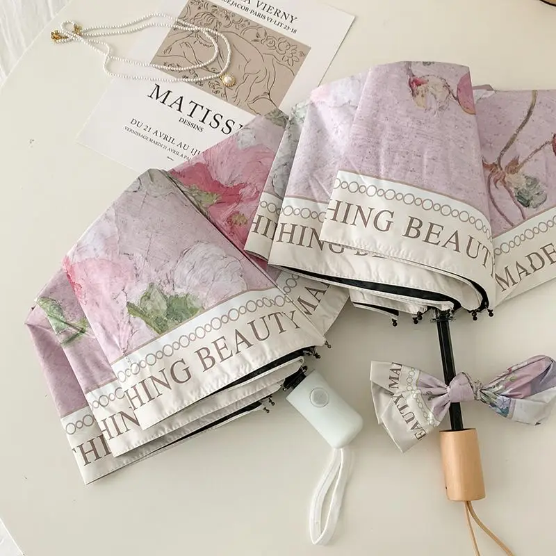 Luxusvirág Esernyő Esős Női Férfiak Összecsukása Uv Napsütéses Napsütés Védelem Összecsukható Lány Parasol