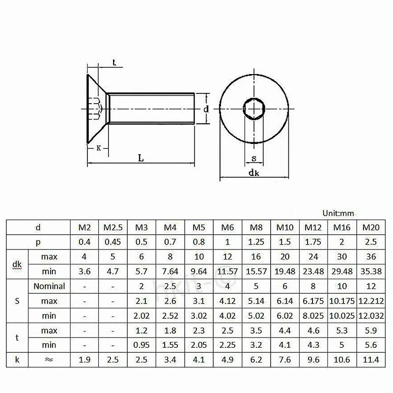 M20 – 2,5 20 Mm -Es Din7991 Fekete 10,9 Osztályú Ötvözött Acél Hex Aljzat Countersunk Fej Csavar Lapos Csavarok Din 7991